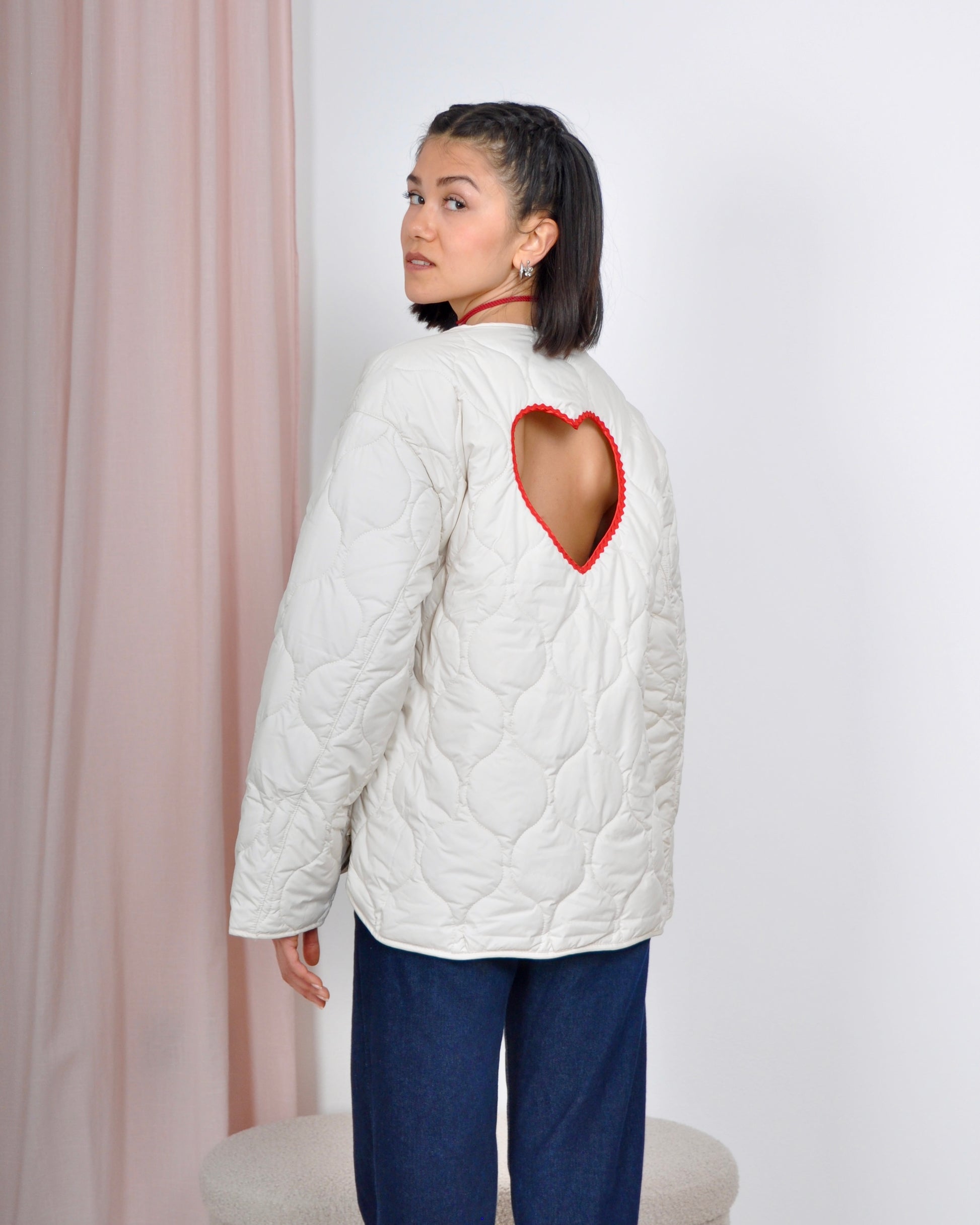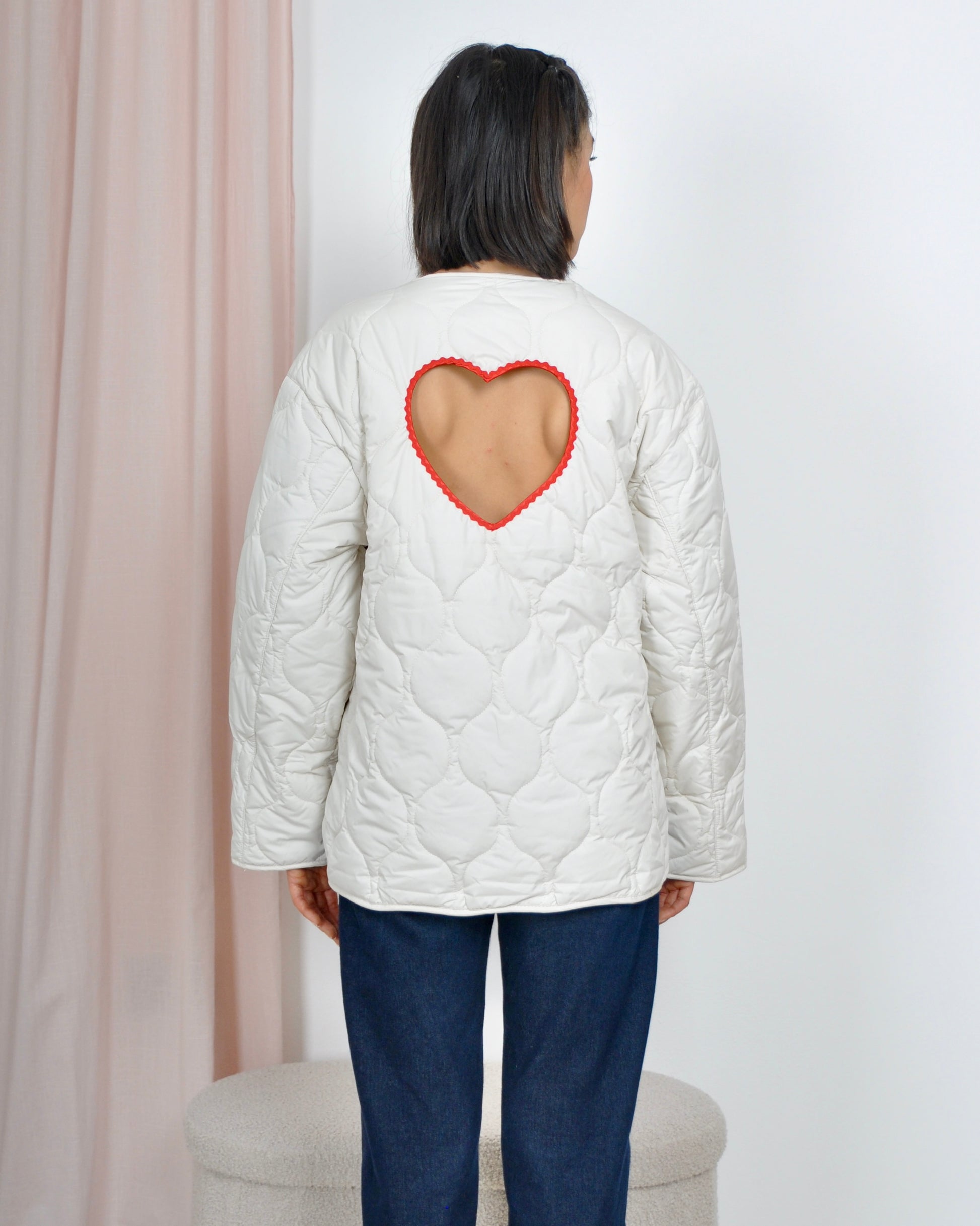 Gorgeous cotton poplin shirt with romantic heart-shaped opening on the back (Registered Trademark ®️ ) .