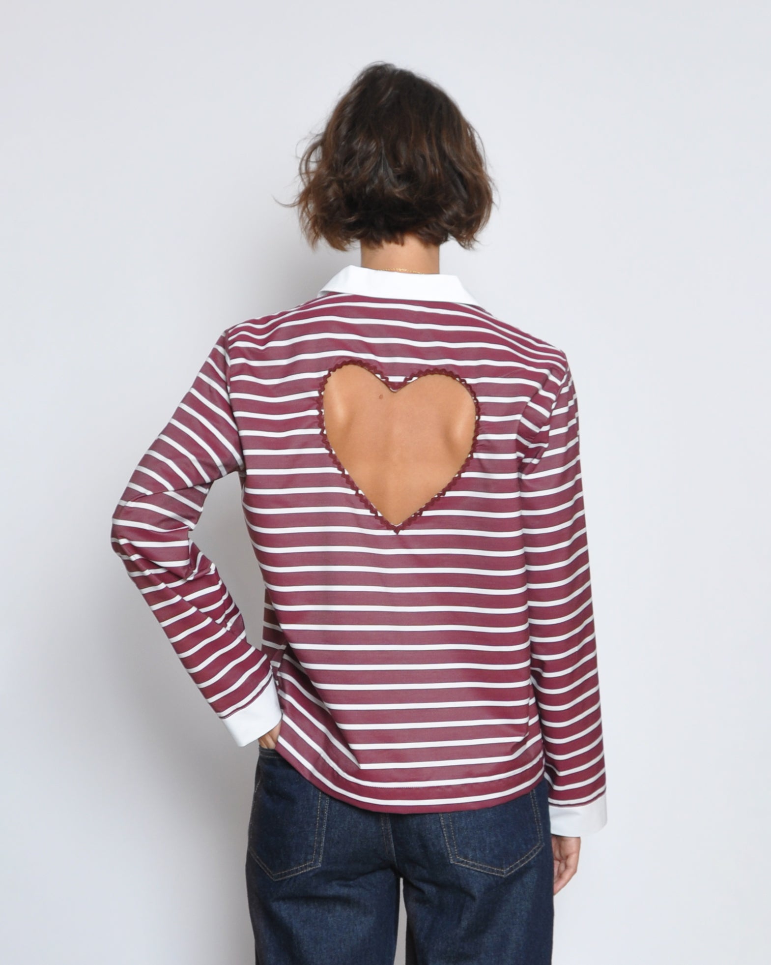 Splendida polo a maniche lunghe in cotone popeline con romantica apertura a cuore sulla schiena (Marchio Registrato®️).